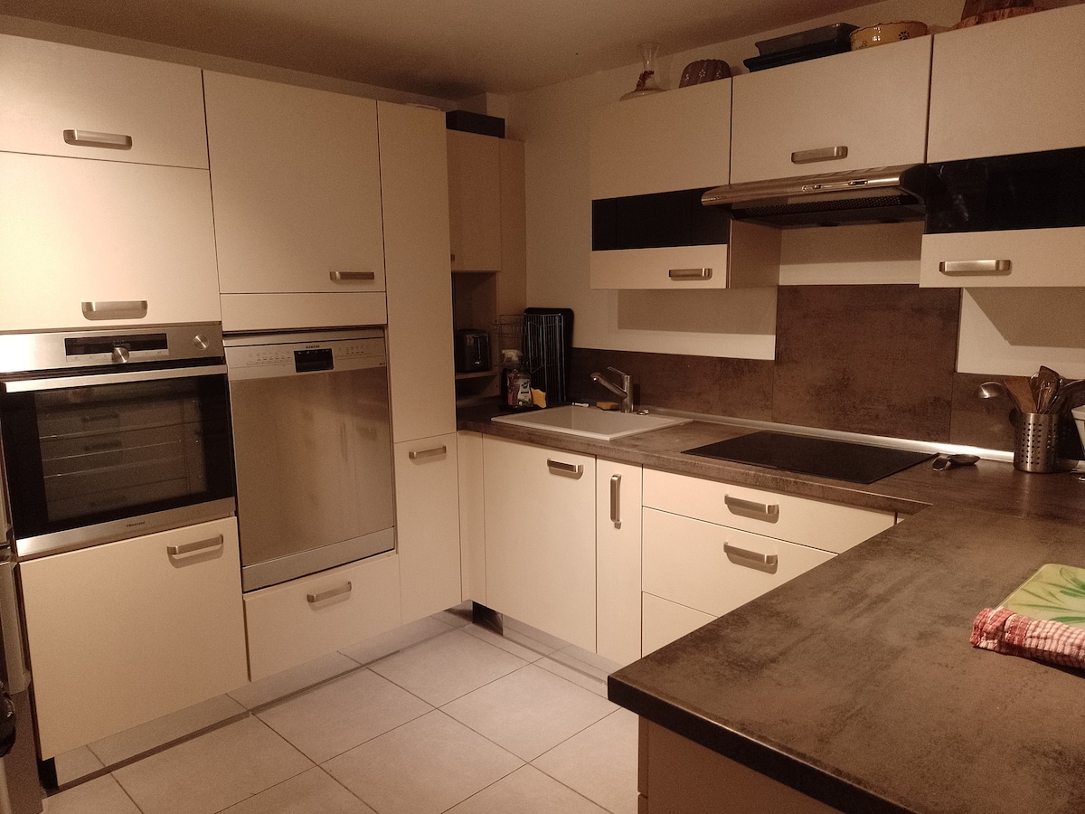 Treromsleilighet på 60 kvm med stor privat hage, felles basseng. Ingen gater rundt, siden huset ligger inne i et kvartal. Kun 300 meter til sandstrand! Rett rundt hjørnet på Lys Square finner du to dagligvarebutikker, tre flotte restauranter, vinbutikk og et bakeri/kafé. Hopp på 420-bussen i enden av veien ved supermarkedet, og du vil være i sentrum av Antibes på bare ti minutter for 2 € per person. Cannes ligger i en annen retning med 25 minutters busstur.