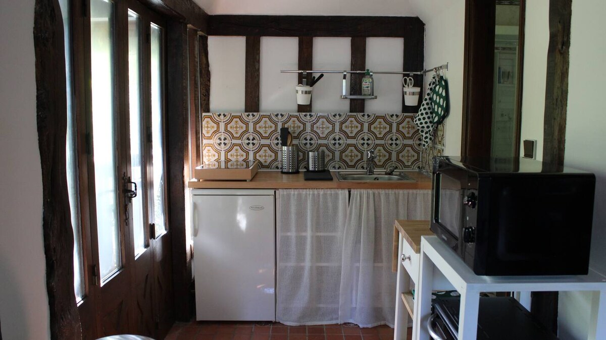 Sjarmerende gammel brødovn i bindingsverk, som ligger ved siden av en bekk, den består av: - Stue med vedovn, - Kjøkken, - I andre etasje: - dusjrom / WC tilgjengelig via en stige (se bilder), -rom med en seng 160x200 med utsikt over bekken, tilgjengelig via en stige (se bilder), Soverom og bad er ikke tilknyttet. Hagemøbler, grill, privat parkering, ved inkludert Merk deg at en annen hytte, Maison de pierres, ligger 100 m unna