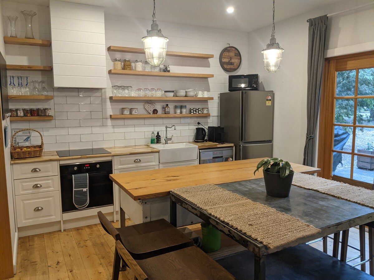 En sjarmerende, helt selvforsynt hytte i avsidesliggende omgivelser, minutter fra Victorias mest populære badeland og fem km fra strendene Ocean Grove/Barwon Heads. Praktisk til Queenscliff og de omkringliggende vingårdene. Vedovn, klimaanlegg, fullt kjøkken og alt sengetøy er tilgjengelig. En kort kjøretur fra porten til The Great Ocean Road. Slapp av og lad batteriene! Og du kan ta med hunden din til en fullstendig inngjerdet hage og møte Paddy og Ruby!