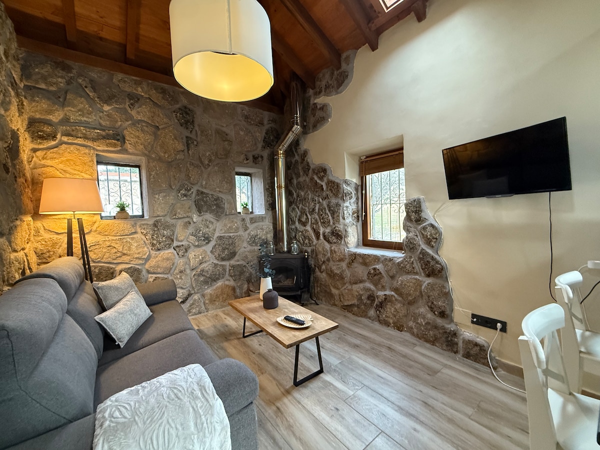 Sjarmerende fjellhus og fullt utstyrt. Beliggende i et unikt naturmiljø: en privat eiendom på 65 ha full av eiker, med en innsjø og en eremitasje, perfekt for spaserturer, fotturer i fjellene... Du vil være midt i Sierra de Guadarrama, omgitt av fjell og natur. Det perfekte stedet for en romantisk helg, med peis og jacuzzi for to personer. Perfekt for å komme med barn. INGEN KJÆLEDYR:: RØYKING ER IKKE TILLATT.