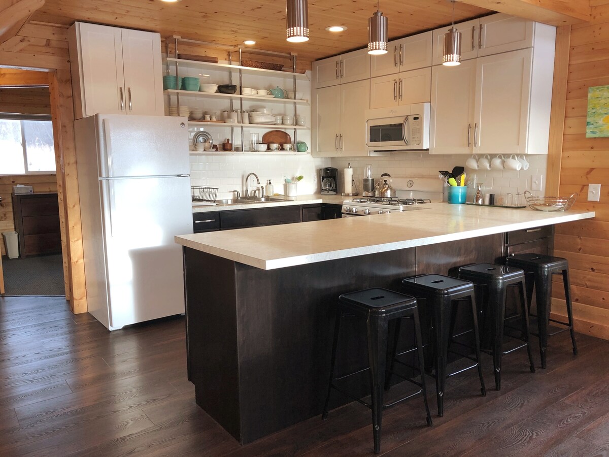 Tømmerhytte med utsikt mot Kachemak Bay ligger 6 miles fra sentrum av Homer. Stedet er romslig, men likevel koselig, med et hovedsoverom i hovedetasjen som inkluderer en kingsize-seng. Ovenpå er det en romslig loftsleilighet med plass til fire personer, med én queensize-seng og to enkeltsenger, samt en fin sitteplass og et bord for spill. Kjøkkenet er fullt utstyrt for matlaging. Hytta er barnevennlig med trapper og en lekeplass. Det er også en stor hage for lek og en terrasse for avslapning.
