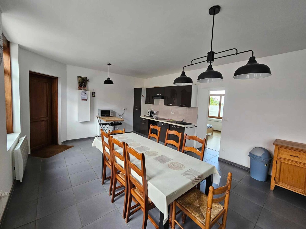 Vi håper å kunne ønske deg velkommen snart i vår nye leilighet i «La Maison Rouge» som ligger på motorvei og SNCF Lille/Dunkerque, stasjon og motorveiavkjørsel i nærheten av landsbyen). - Uavhengig leilighet - Stor terrasse med panoramautsikt over landskapet - Vedovn – Fullt utstyrt kjøkken + vaskemaskin og tørketrommel – Sengetøy 180/200 nøye utvalgt for å sikre maksimal komfort - Ultra-raskt fiber-WiFi, Apple og Orange TV - Mange butikker i gangavstand