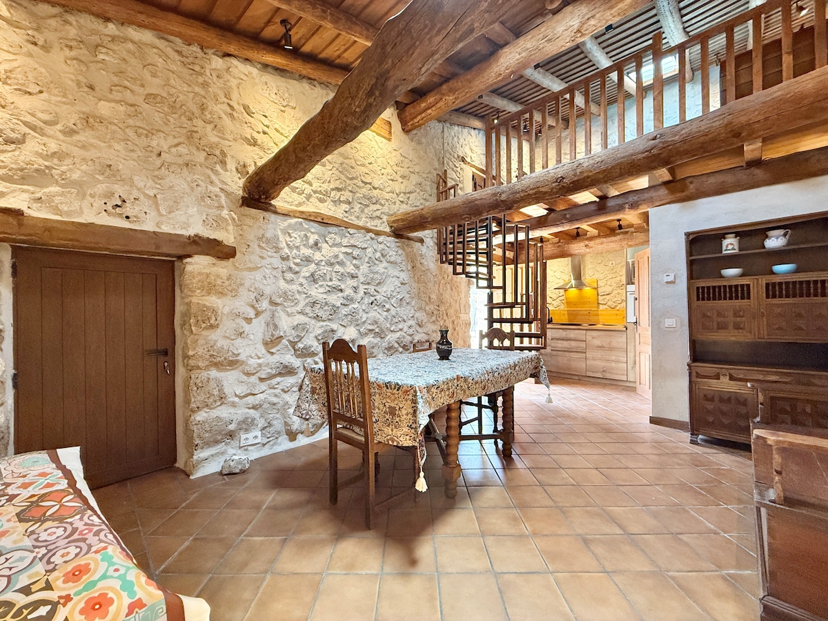 Gammelt hus i murstein, med en romslig stue med peis og bord i massivt tre, kjøkken med alle hvitevarer, et bad og et toalett. Soverommene ligger i øverste etasje, og ett av dem har en egen peis. Ved inngangen er det en stor veranda med bord og stoler. Det ligger midt i naturen i sentrum av naturparken Ojo Guareña, nærmeste flyplass ligger 80 km unna (1 time) og i nærheten av skianlegg.