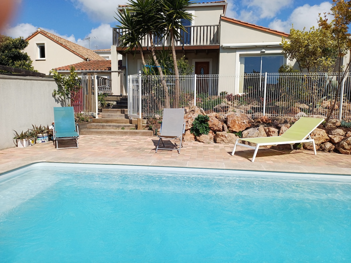 Villa 6 personer med svømmebasseng, 3 bad, i nærheten av Sète