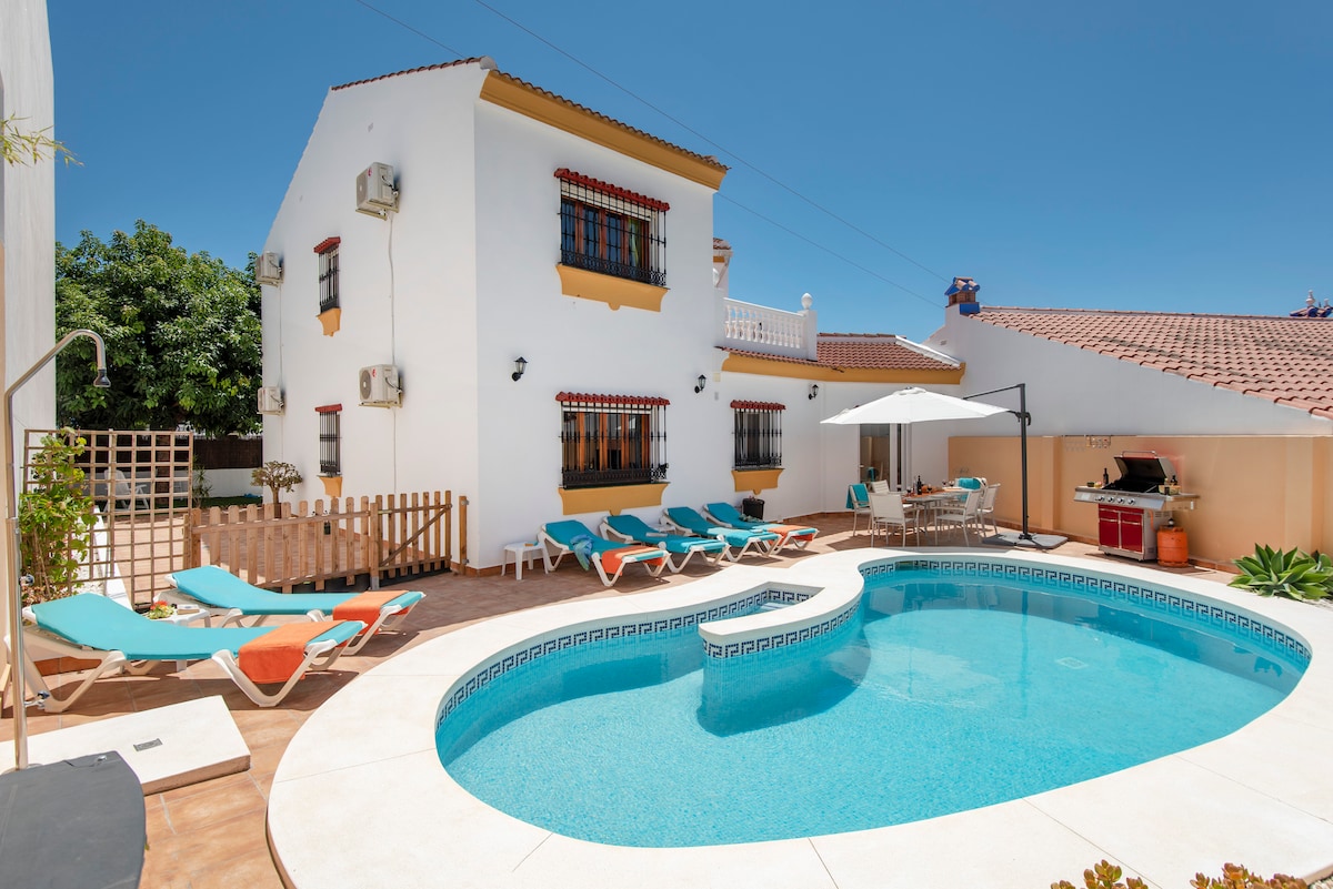 Villa Septiembre er en ettetasjes villa med fortryllende havutsikt, bare syv minutters gange fra Fuengirola-stranden og promenaden. Den har et åpent og moderne kjøkken, en stor stue, basseng, solsenger, utemøbler av høy kvalitet og en takterrasse med fantastisk utsikt. Villaen er privat og sikker, perfekt for barn. I nærheten finner du restauranter, kjøpesenter og attraksjoner som Fuengirola slott, vannsport og enkel tilgang til Marbella, La Cala de Mijas og Benalmádena.