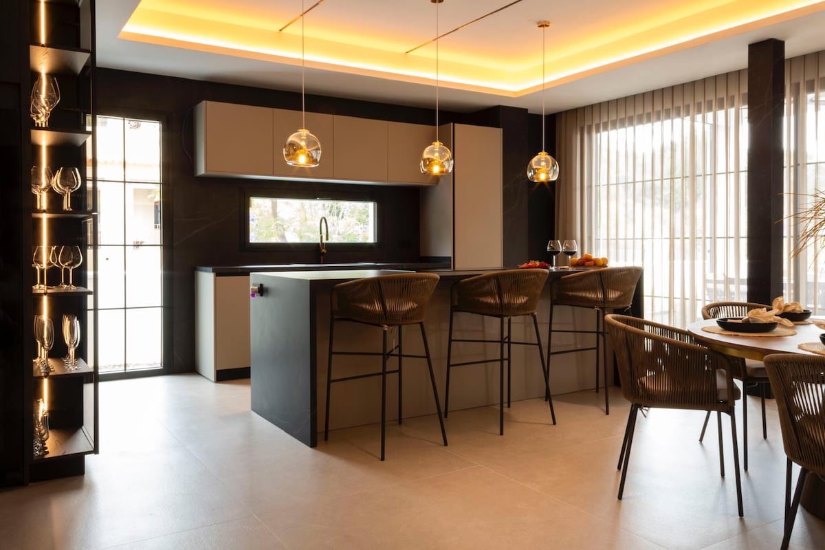 Designermodulær villa med privat basseng, panoramautsikt og high-end finish — ideell for grupper på opptil syv personer. Terrasse, hage, grill, parkering og peis. I nærheten av stier i Sierra de Cazorla. Tilpasset for bevegelseshemninger: 91 cm dører, første etasje uten trinn og walk-in-dusjer. Førsteklasses rengjøring på forespørsel.