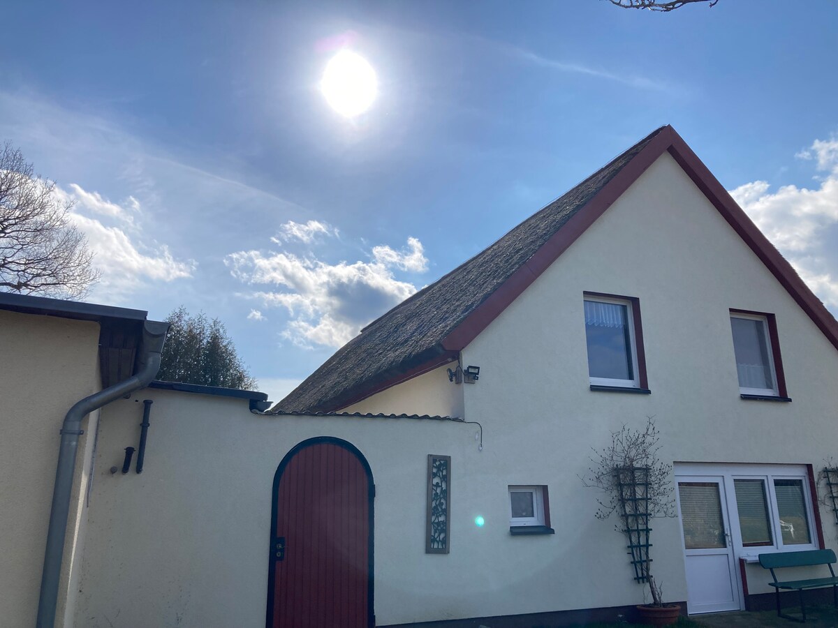 Willkommen im stilvollen Reetdachhaus in ruhiger Lage, nur 100 m vom Bodden und nah zur Ostsee - perfekt für Familien, Paare & Freunde. 3 Schlafzimmer mit Doppelbetten, 2 Duschbäder (1 mit Wanne), Kamin, Sauna, Sky-TV & voll ausgestattete Küche. Große Süd-Westterrasse am Teich. Idealer Ausgangspunkt für Radtouren und Naturerlebnisse. Hunde herzlich willkommen. Handtücher, Bettwäsche und Parkplatz inklusive.