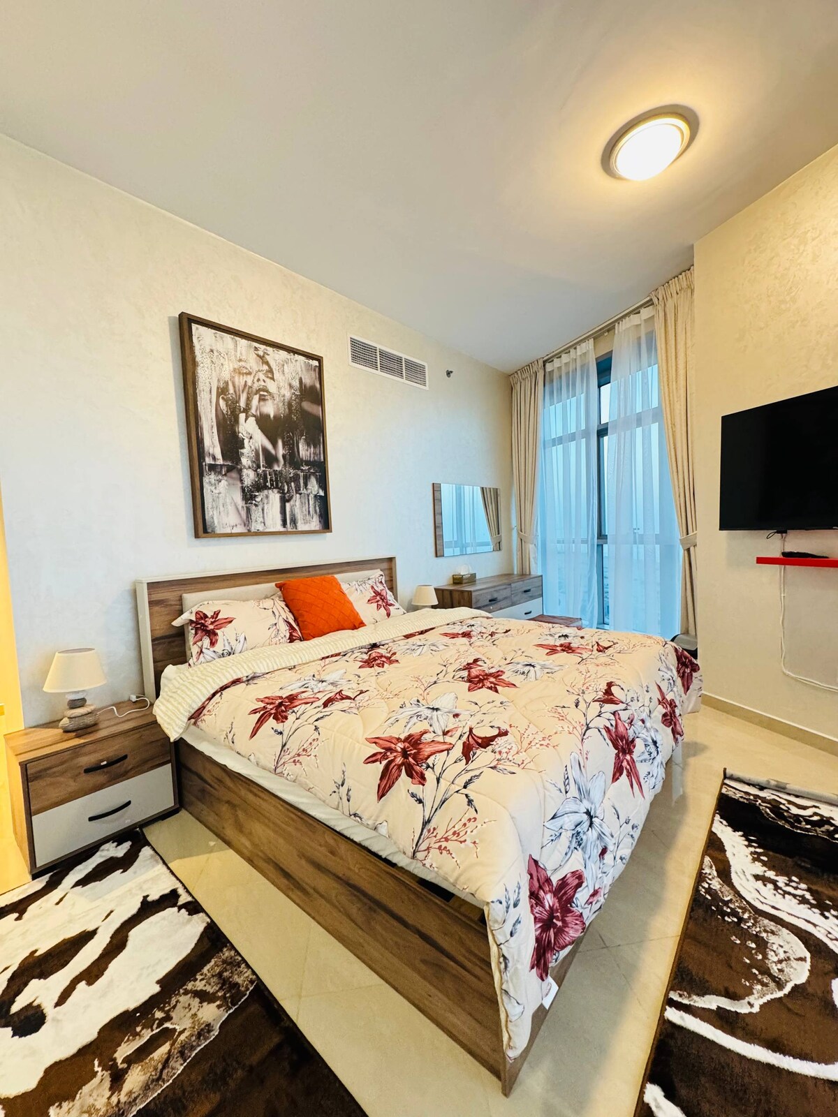 • Moderne 2-roms tilfluktssted i Bloomfields, Fujairah – elegant design og komfort i feriestedstil • Romslig stue + smart-TV • Soverom med kingsize-seng og eget bad + komplett bad • fullt utstyrt kjøkken og spiseplass. • Privat balkong, trådløst nettverk med høy hastighet • Tilgang til basseng, klimaanlegg, nye laken inkludert • Ideelt for forretnings- eller fritidsopphold. Husregler: • Kjæledyr, røyking, fester og filming er ikke tillatt. • Innsjekking kl. 15.00 | Utsjekking kl. 12.00 • Minste opphold: tre netter