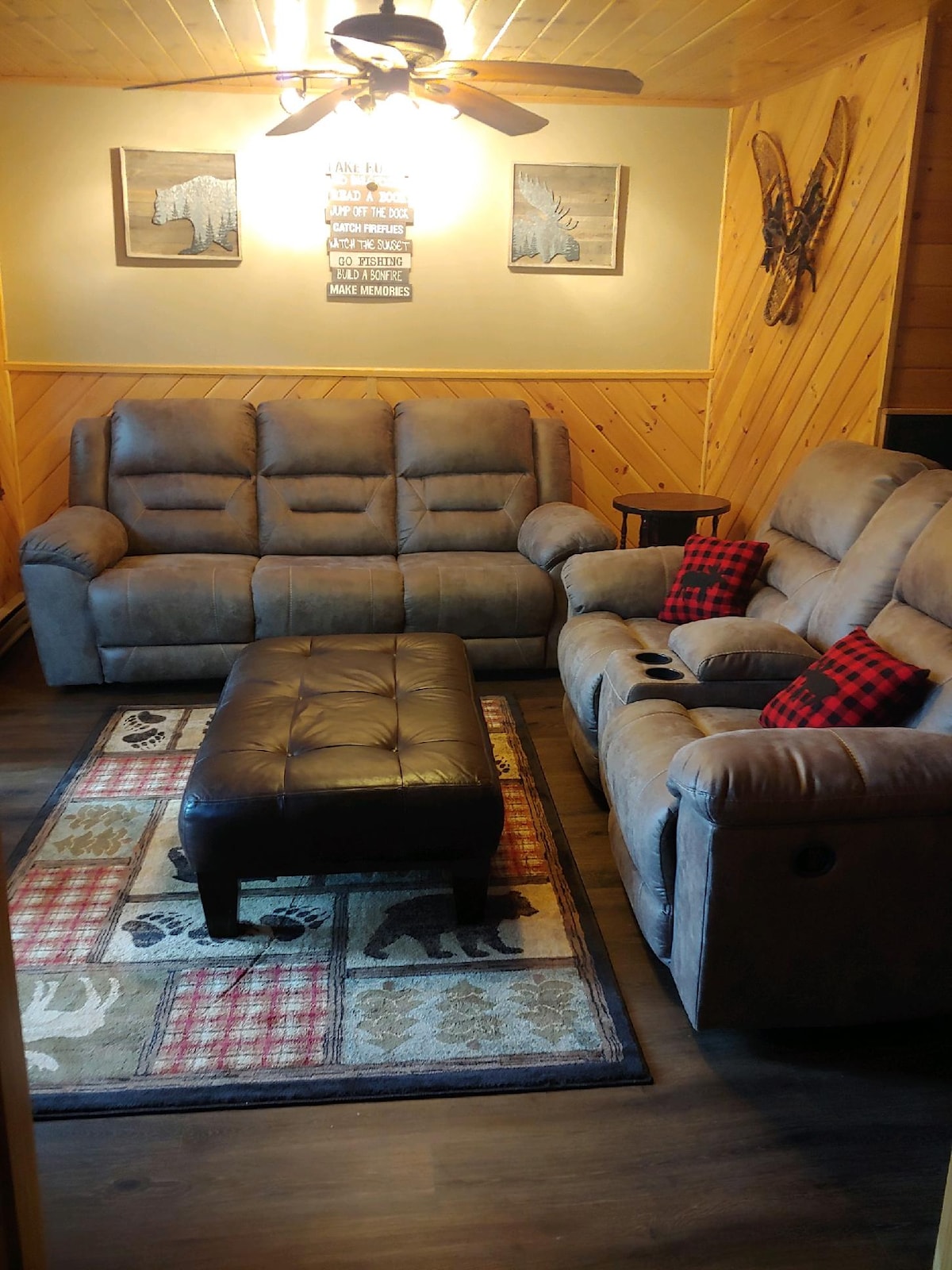 NYTT UTLEIESTED! Året rundt fire soverom og to bad hjem med furuinteriør på en rolig privat lukket endevei. Utmerket tilgang til snøscooterstien rett ved Big Moose Road, bare ett minutt fra Big Moose Yamaha. Full møblert og oppdatert. Gjesten må sørge for laken, putevar og håndklær. Vi tilbyr tepper, dyner og puter. Rask trådløst nettverk og internett FireStick TV er tilgjengelig. Utendørs bålplass m/ stoler, ny gassgrill og piknikbord. Kjelleren har dartbrett, biljardbord og bordfotballbord.