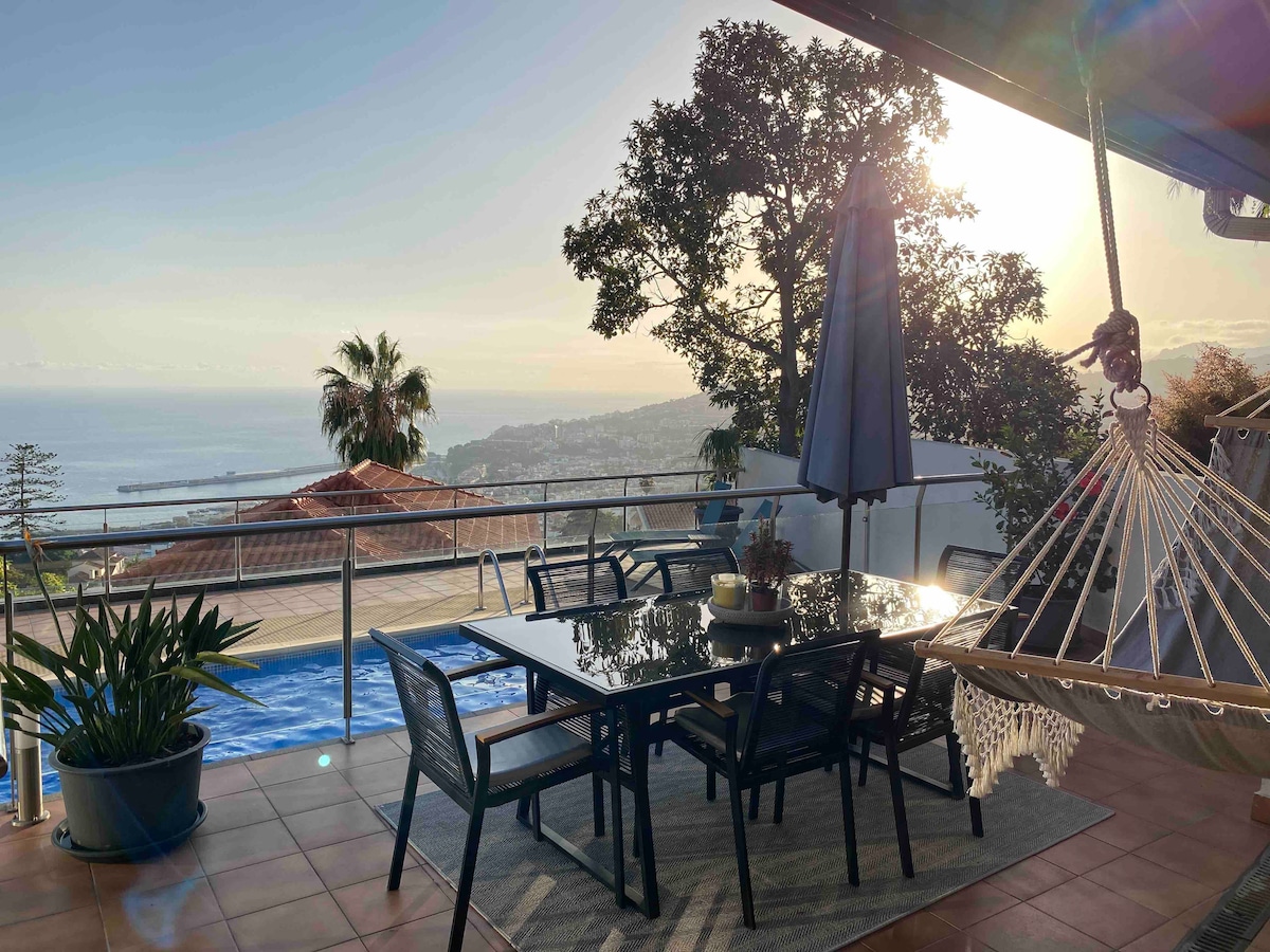 Denne leiligheten ligger i en bakke i de høye områdene øst for Funchal. Med den mest fortryllende panoramautsikten over Atlanterhavet, som går over Funchal, opp til fjellene. Utvilsomt et privilegium å se dette fantastiske landskapet fra balkongen i selve leiligheten. Her tilbyr jeg et rolig sted som gir øyeblikk av avslapning og velvære med de mest unike solnedgangene som noensinne er sett.