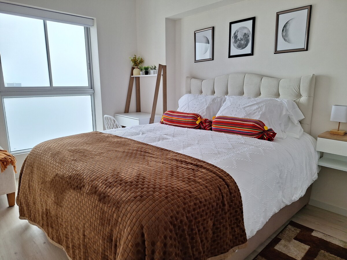 Nyt en koselig leilighet med ett soverom i 18. etasje i en moderne bygning på Avenida Brasil. Den har to balkonger med fantastisk utsikt, et fullt utstyrt kjøkken, en komfortabel seng, to smart-TV-er og fiberoptisk trådløst nettverk. Bare 25 minutter fra flyplassen og i nærheten av supermarkeder, restauranter og kollektivtransport. 15 minutter til Limas historiske sentrum og 20 minutter til Miraflores. Perfekt for par eller alenereisende.