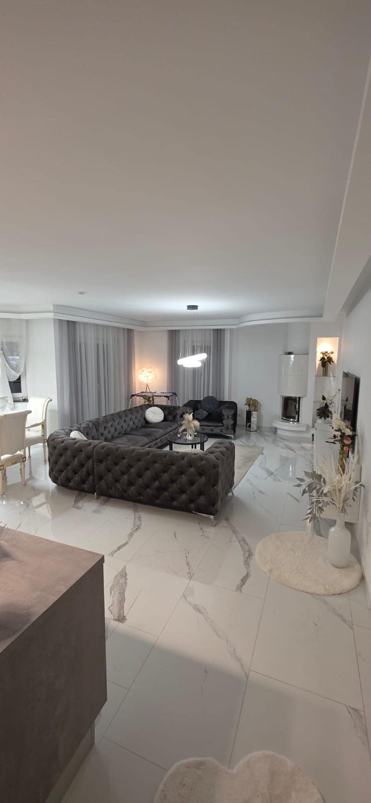 115 m² Luxury Apartment | Fireplace • Spa Bathroom • Balcony Lounge 115 m² of pure comfort: Open fireplace, elegant marble floors and a luxurious spa-style bathroom. Private balcony lounge, designer interior and contactless check-in — perfect for special stays. Ideal for couples, business travelers or exclusive weekends. Quiet location in Fürth-Vach with fast access to Nuremberg or Erlangen ( Messe, UNi, )Fully equipped kitchen, high-speed Wi-Fi, smart TV and a comfortable king-size bed. AMM