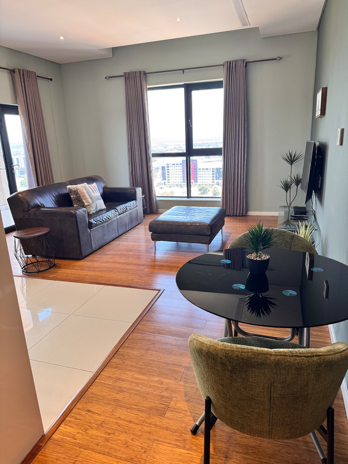 Leiligheten vår ligger bare noen minutter fra kjøpesentre, restauranter, sykehus og Sir Seretse Khama internasjonale lufthavn (bare 12 minutter unna), og tilbyr uovertruffen bekvemmelighet. Designer-senger: Opplev ultimat avslapning med våre toppmoderne madrasser og Sengetøy i egyptisk bomull. Moderne apparater: Lag enkelt mat ved hjelp av det fullt utstyrte kjøkkenet vårt med oppvaskmaskin, kjøleskap, kaffemaskin og komplett bestikk.