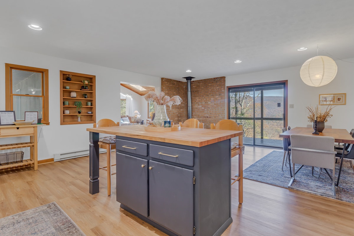 IG @montevistawv Luksusferie profesjonelt designet for STR. 🏔️Massiv panoramautsikt over tre delstater. 🏌️♂️Golfballbane. 🏀 Pickleball, basketball, volleyball og tennis. 🎮 PlayStation 5 Mini-plate. Boblebad for♨️ seks personer. 🔊Sonos-lyd overalt. Lader til elbil på🔋 nivå 2. 🥾 Tursti på stedet. 🌳 133 mål privat eiendom, ingen stilletid. 🔥 Massivt bålsted + grill og pizzaovn. 🛋️ Koselig gasspeis. 🌐 Raskt trådløst nettverk og tre 65" smart-TV-er. 🛏️ Tre kingsize-senger og dobbeltseng. 💼 Eget arbeidsområde.