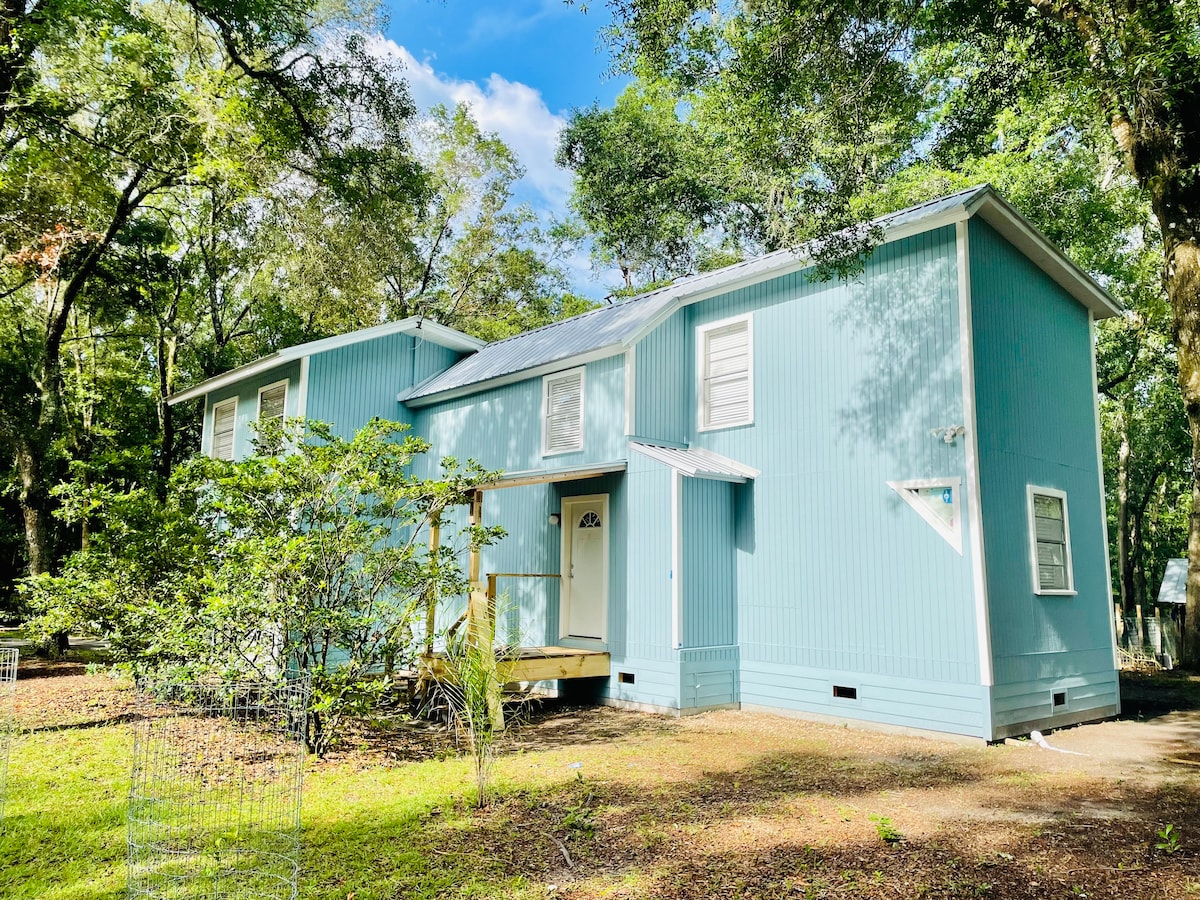 Welcome to our hidden treasure! Five minutes to UF, Shands and downtown. Perfect for business travelers, hospital or university visitors, and game day. Enjoy wandering our three acres of beautiful live oak hammock or visit adjacent Paynes Prairie State Preserve or Biven's Arm Nature Park for hiking and wildlife photography.