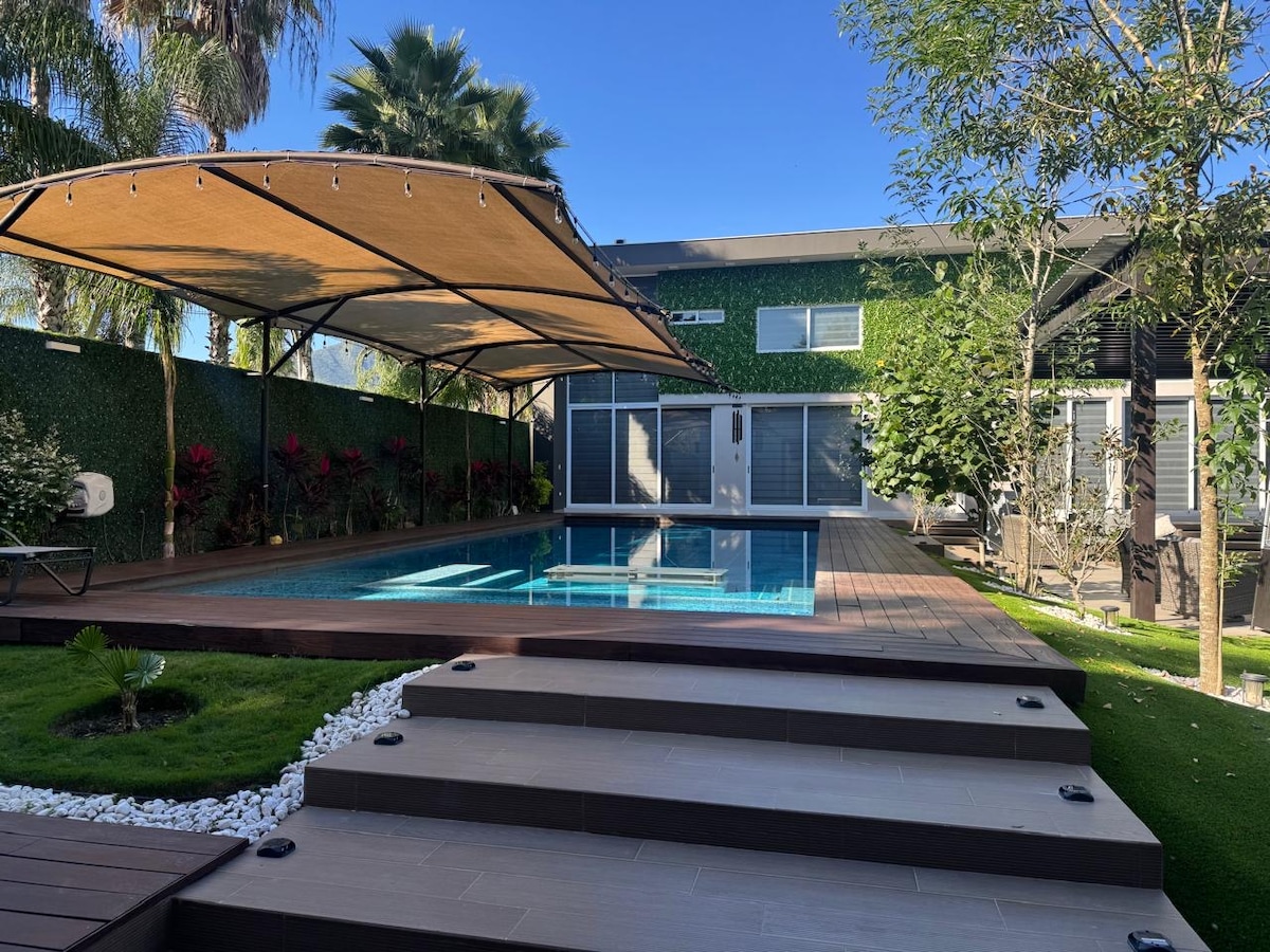 Huset har 5 soverom utstyrt med Air Condition og oppvarming. Stuen er vertskap for en praktfull skorstein. Et av soverommene har en barneseng, og hovedsoverommet har walk-in-garderobe og boblebad. Trådløst nettverk og smart-TV er tilgjengelig. Det er en komfortabel hengekøye på den bakre terrassen, og du finner en grill i Palapa-området. Vi har også en trampoline og en bålplass. Huset er utstyrt med parkeringsplass og elektronisk port. Huset er omgitt av hager, perfekt for å hvile.
