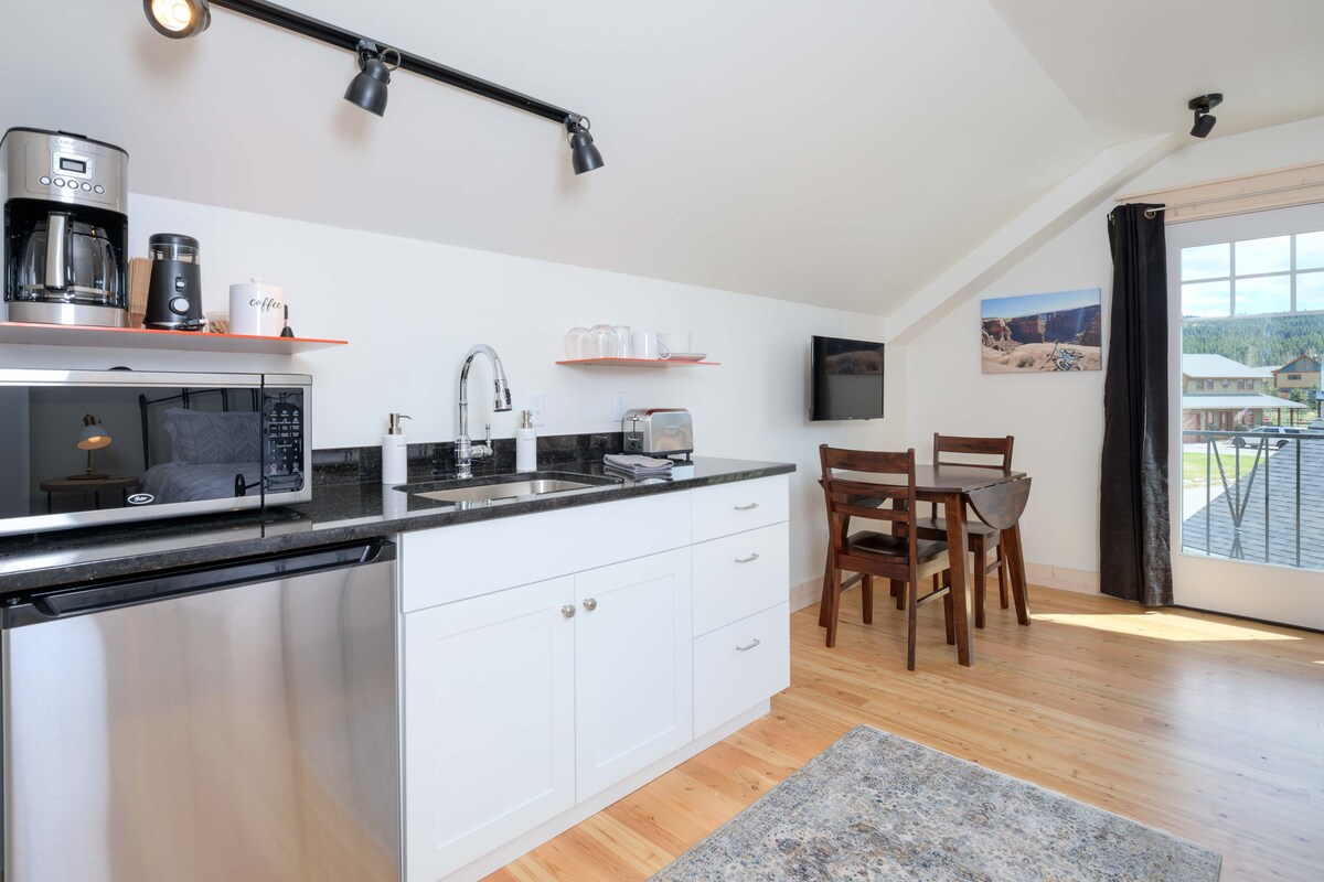 Dette stedet er et koselig, sjarmerende studio som ligger over en garasje på en vakker eiendom i gangavstand til Big Sky's Town sentrum. Tidlig innsjekking - Vi kan ikke alltid imøtekomme tidlig innsjekking på grunn av koordineringen med rengjøringspersonalet. Men hvis du ønsker en tidlig innsjekking, vennligst send en tidlig innsjekkingsforespørsel, og vi vil gi deg beskjed om forespørselen kan innvilges. Hvis vi kan imøtekomme tidlig innsjekking, er det et tidlig innsjekkingsgebyr på 50 $.