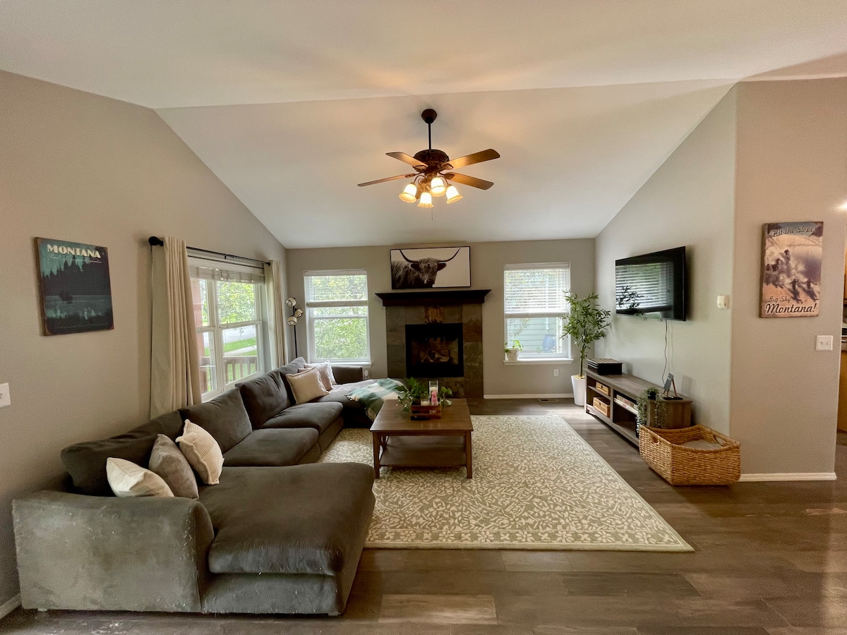 Parkside Chalet ligger noen minutter fra Bozeman flyplass, og ønsker deg velkommen med en åpen planløsning og rikelig med fasiliteter. Den store overbygde terrassen med innebygd grill og boblebad gir den ultimate oasen for avslapning og glede. Med en bakgård som en offentlig park, er det rikelig med plass til å komme seg ut og nyte dagen mens barna leker på lekeplassen. De tre soverommene har god plass til gruppen din med to kingsize-senger og en queensize-seng. Når du ankommer, vil du kanskje aldri dra.