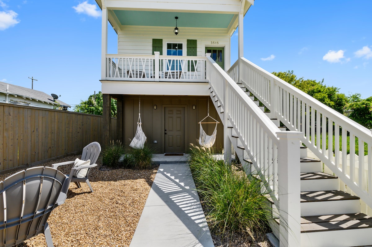 Velkommen til Cruise Control! Familien din vil være i nærheten av alt når du bor i denne nyrenoverte bungalowen fra 1915 i hjertet av Galveston, med enkel tilgang til stranden, populære barer og restauranter på Seawall, Pleasure Pier og Strand. Cruise i golfbilen eller tråkk en strandcruiser rundt på øya for en dag med sightseeing eller avslapning på stranden. Kom hjem til en ren, komfortabel setting for å slappe av på terrassen, grille eller komme deg ut på kvelden! Planlegg ferien din i dag!