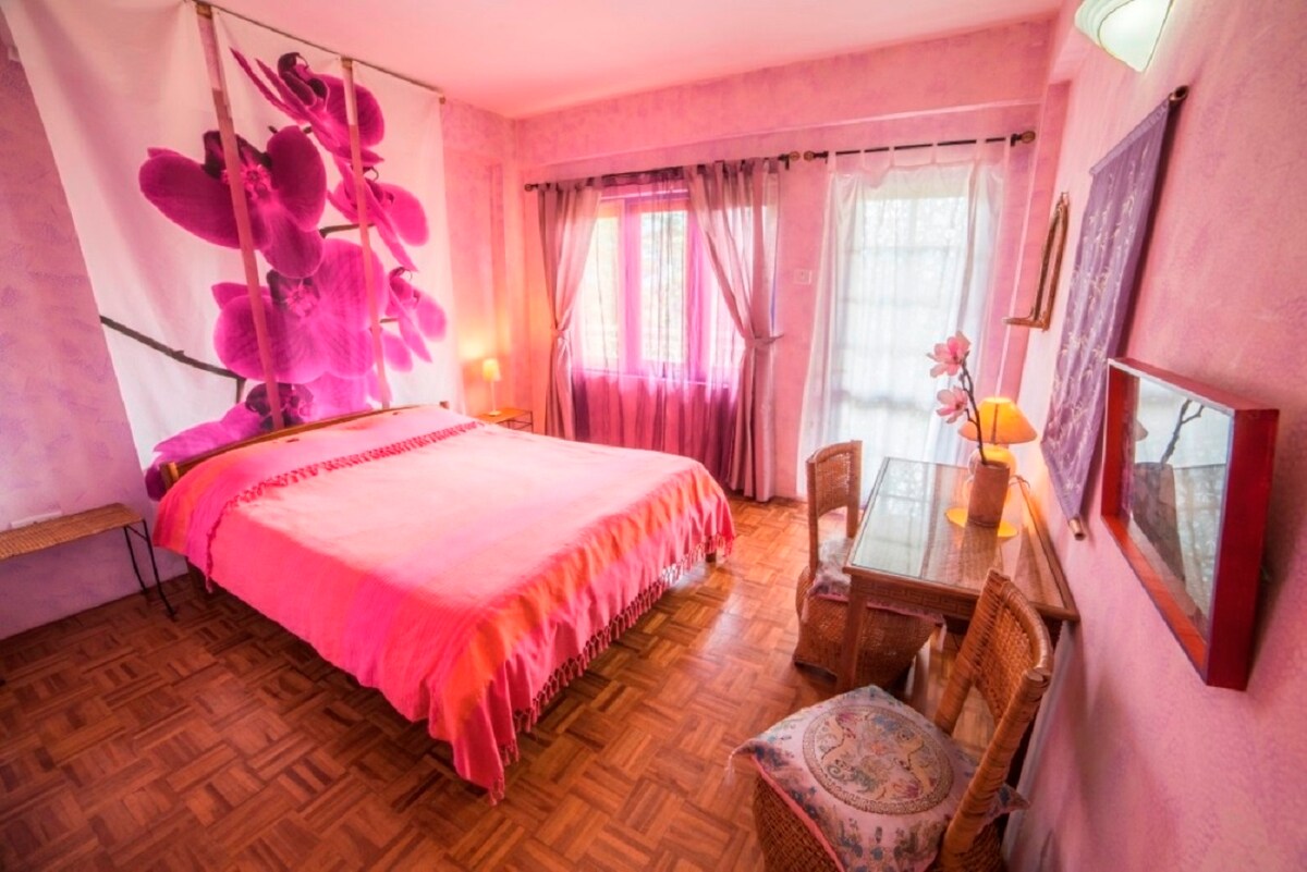 Den urbane boligen er et nytt foretak fra februar 2021. Vi har tre rom med queensize-seng i hvert rom og en ekstra enkeltseng i ett, det har tilhørende bad. Rommene våre er rene, og maten vår er deilig, den drives av en lokal familie som bor i etasjen over. Det ligger i nærheten av det lokale markedet, lett 10 minutters gange til MG Marg, taxi er lett tilgjengelig, mat ledd er i nærheten, vi gir hjemmelaget mat på forespørsel
