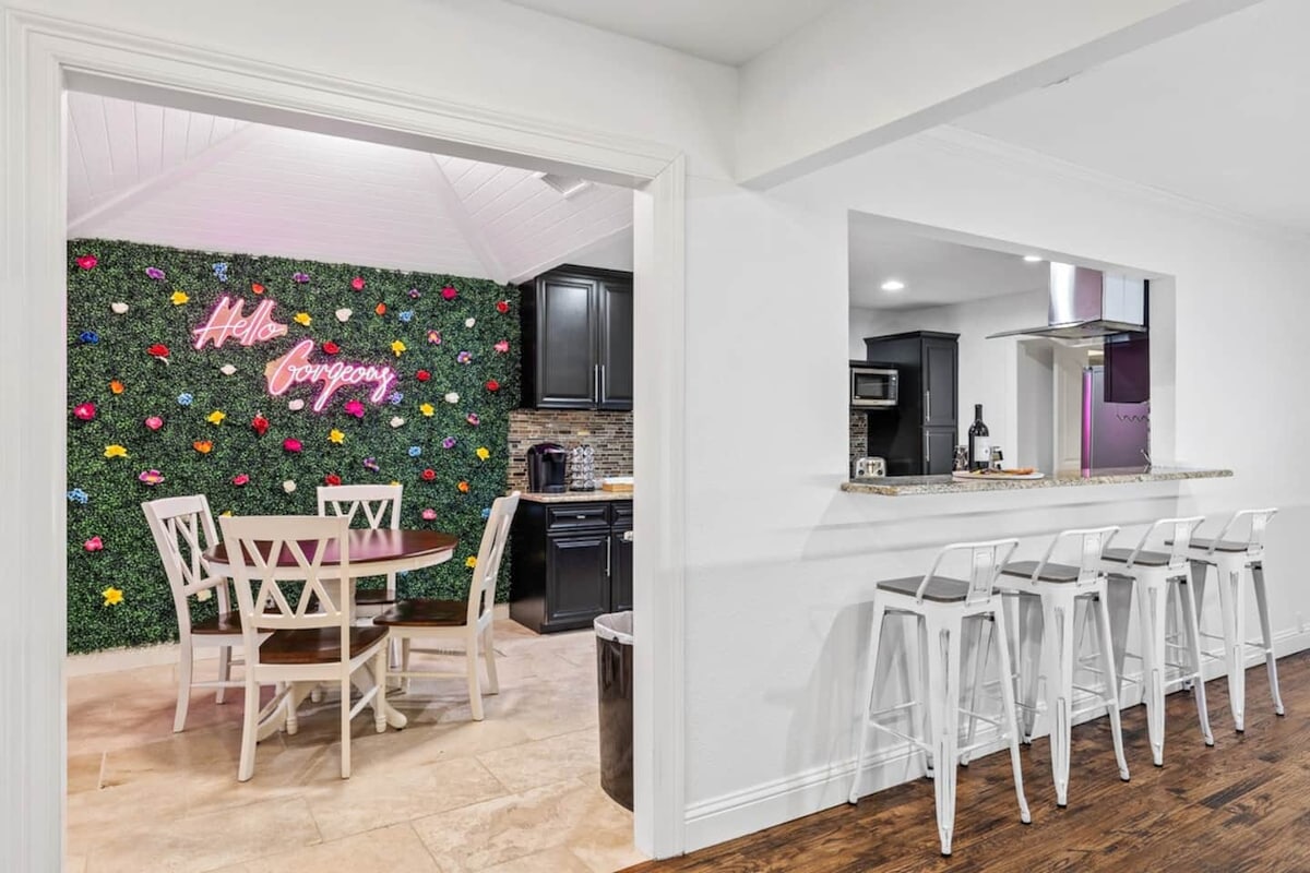✅ 2272 kvadratfot – 4 soverom – 2,5 bad. ✅ Tre arkadespill, fotball, shuffleboard-bord, brettspill. ✅ Bakgård med basseng, boblebad, spisebord, solsenger, bålplass og grill. ✅ Fullt gourmetkjøkken + stort spisebord for ni personer. ✅ Stue med stor seksjonssofa og 65 tommers TV. Innsjekking ✅ uten vert/vaskemaskin og tørketrommel/raskt trådløst nettverk/garasje for to biler. Huset vårt har maksimalt 12 gjester, og alle som kommer til hjemmet teller mot den totalsummen, uavhengig av hvor mange som overnatter.