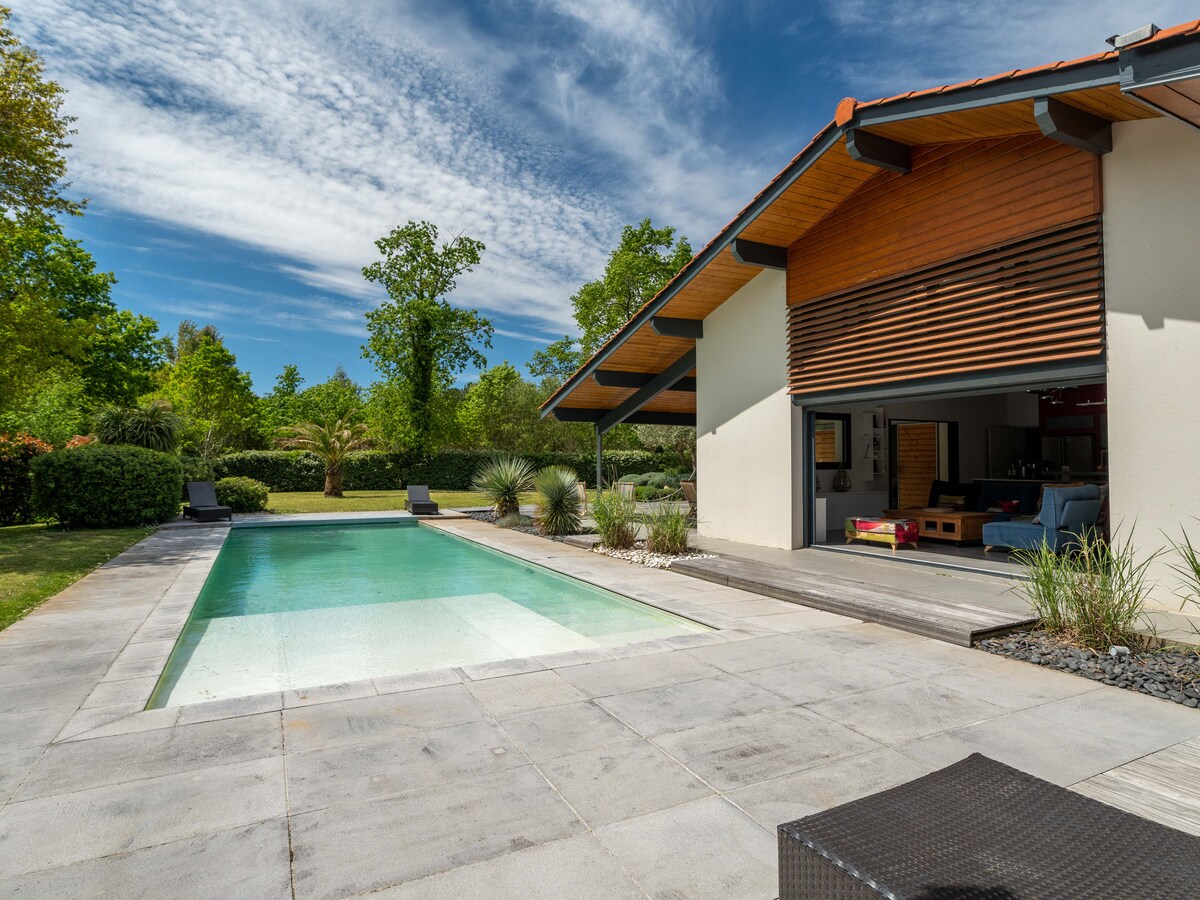 Bare 12 min. Lourdes, huset ligger på et privat domene på 25 hektar omgitt av skog og marker. Vi restaurerte låven til en luksusvilla som er perfekt for to par eller en stor familie med barn. Du vil nyte et svømmebasseng på 20 meter langt oppvarmet til 27 ° i et helt fantastisk landskap. Stillhet er garantert. Bassenghuset vårt på 40 m2 har en pizzaovn, en peis til grillene og alt nødvendig utstyr for matlaging.
