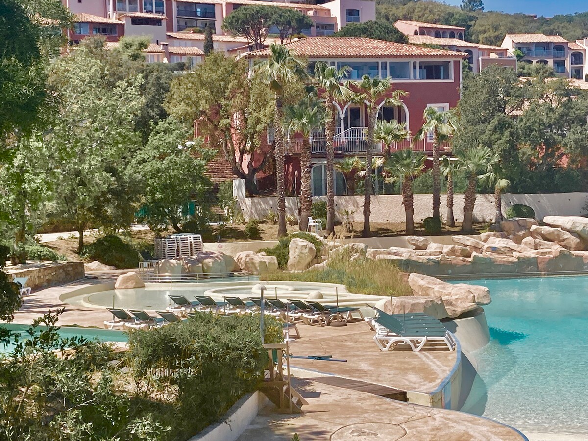 5 km til St Tropez/to soverom/klimaanlegg/basseng/spasertur til stranden