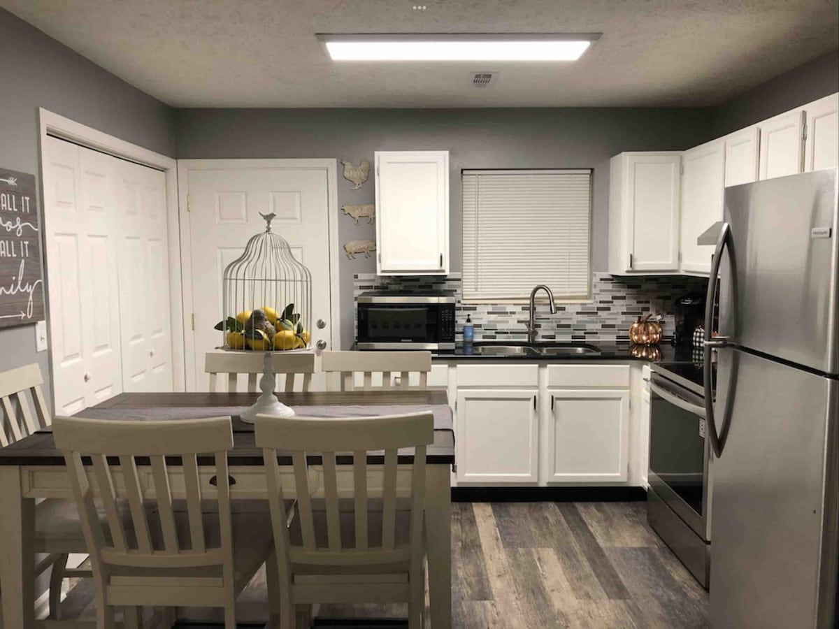 Du kommer til å forelske deg i freden og roen her, og du kommer til å elske å være bare noen få minutter fra ALT i byen! Fra det egyptiske bomullet, anti-allergen sengetøy, til de nedre alternative dyner og puter, bambus varmeavledende laken, splitter nye skumtoppmadrasser og mer, vil du sove som en konge. Det er en ENORM kabelpakke, ultrahøyhastighets WiFi, smart-TV-er og arkadespill for din fornøyelse. Kjøkkenet er fylt med alt tilbehøret du trenger. Bare BYOF!