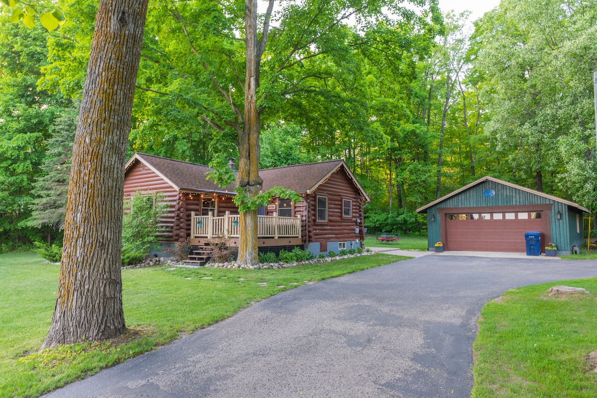 Privat tømmerhytte, fire minutters gange til Torch Lake.