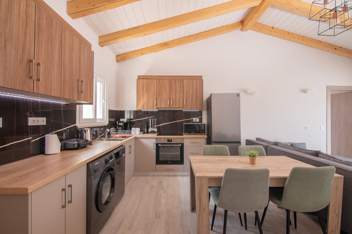 Bo som gamle korfioter i en grafisk, miljøvennlig hytte i nærheten av en skog og havet. Bygget med lokal stein og gjenbrukbart tre, helt harmonisert med Korfiot-naturen og miljøet. Stedet er fredelig langt unna byens summing. Folk som bor her har ikke TV og ny teknologi, akkurat som i gamle dager. Utsikten mot fjellene i kombinasjon med den grønne skogen og det blå havet lover å gi deg en unik opplevelse.