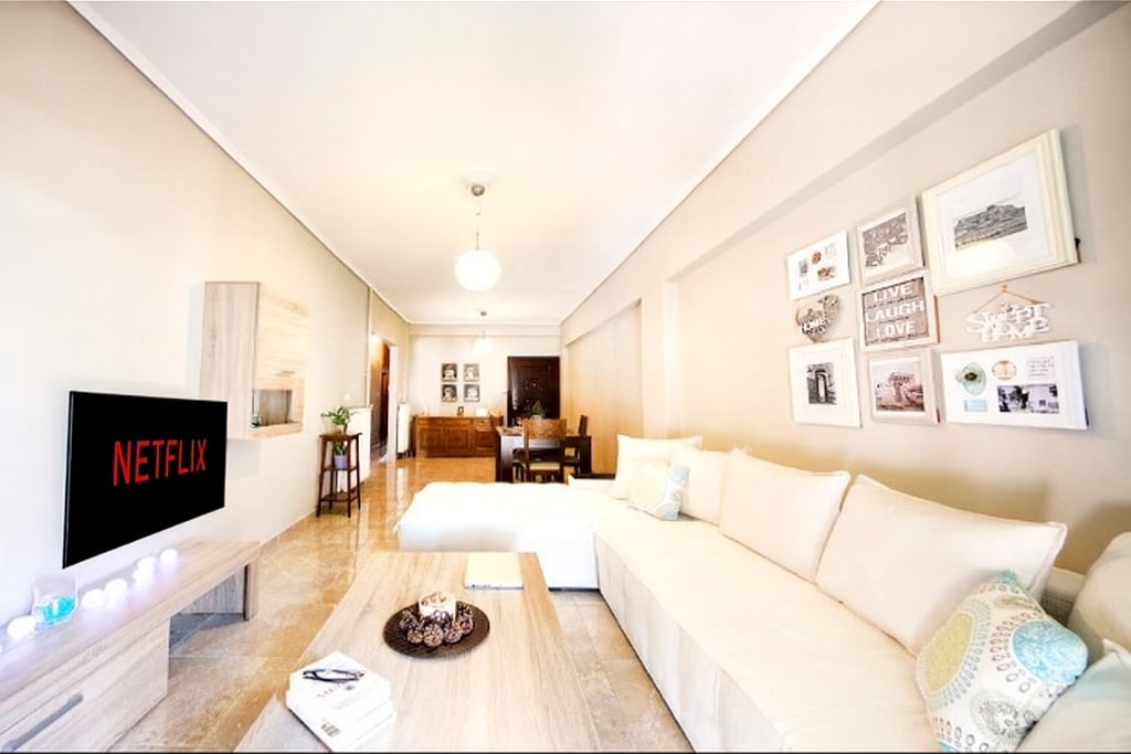 Siden leiligheten ligger i den øverste etasjen av bygningen, er det ingen form for forstyrrelser, så du kan lett føle deg som hjemme, som rapportert av alle tidligere gjester. Leiligheten er lys og luftig, med to private balkonger. På en av dem vil du bli overrasket over utsikten til Akropolis, mens du på den andre siden vil nyte en fantastisk solnedgang og en fantastisk utsikt over byen, spesielt om natten.