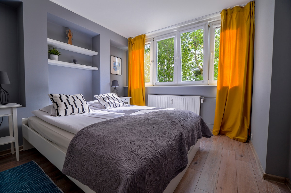 Drømmer du om å bo ved havet ... Dra nytte av den praktiske leiligheten som ligger bare 200 meter fra boulevarden i Gdynia. Tilbyr deg en komfortabel leilighet i første etasje i et rolig hus tidlig i trettiårene. Fang havbrisen og gi deg selv og dine kjære kan slappe av i hjertet av Gdynia! Leiligheten på 45 m2 er designet for opptil 4 personer. Den består av en stue med tekjøkken, soverom, påkledningsrom og bad med dusj. Soverommet har en komfortabel seng for to personer. Stuerommet har en koselig stuesofa med 2 sitteplasser, sofabord og TV. Tekøkken er utstyrt med det nødvendige tilbehøret for å lage et måltid som du spiser ved et brettbord. Pris for 2 personer Bare 50 meter fra eiendommen ligger offentlige parkeringsplasser. Ta gjerne kontakt på Airbnb hvis du har spørsmål. Det blir en glede å være vertskap for deg Tricity! Vi ses snart