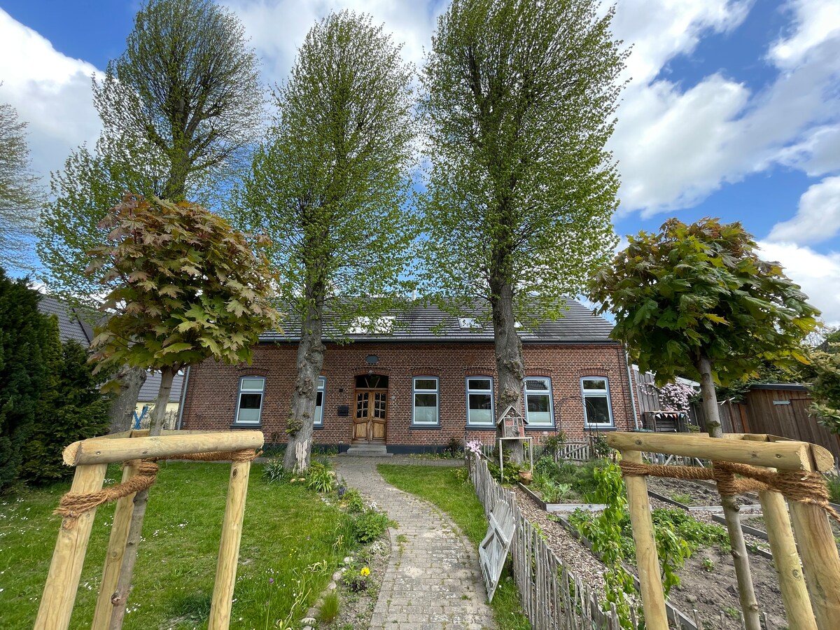 Renovert med kjærlighet for fire år siden, tilbyr vi vår romslige gamle landskole som feriehus under vårt fravær. Det tilbyr rikelig med plass til to familier med mange barn, inkludert en overbygd terrasse og en stor hage med mange små hjørner. Inkl. kyllinger og opptil fem egg per dag. Inkl. daglig tilgang til svømmeparadiset FehMare når du bestiller spa-kortet.