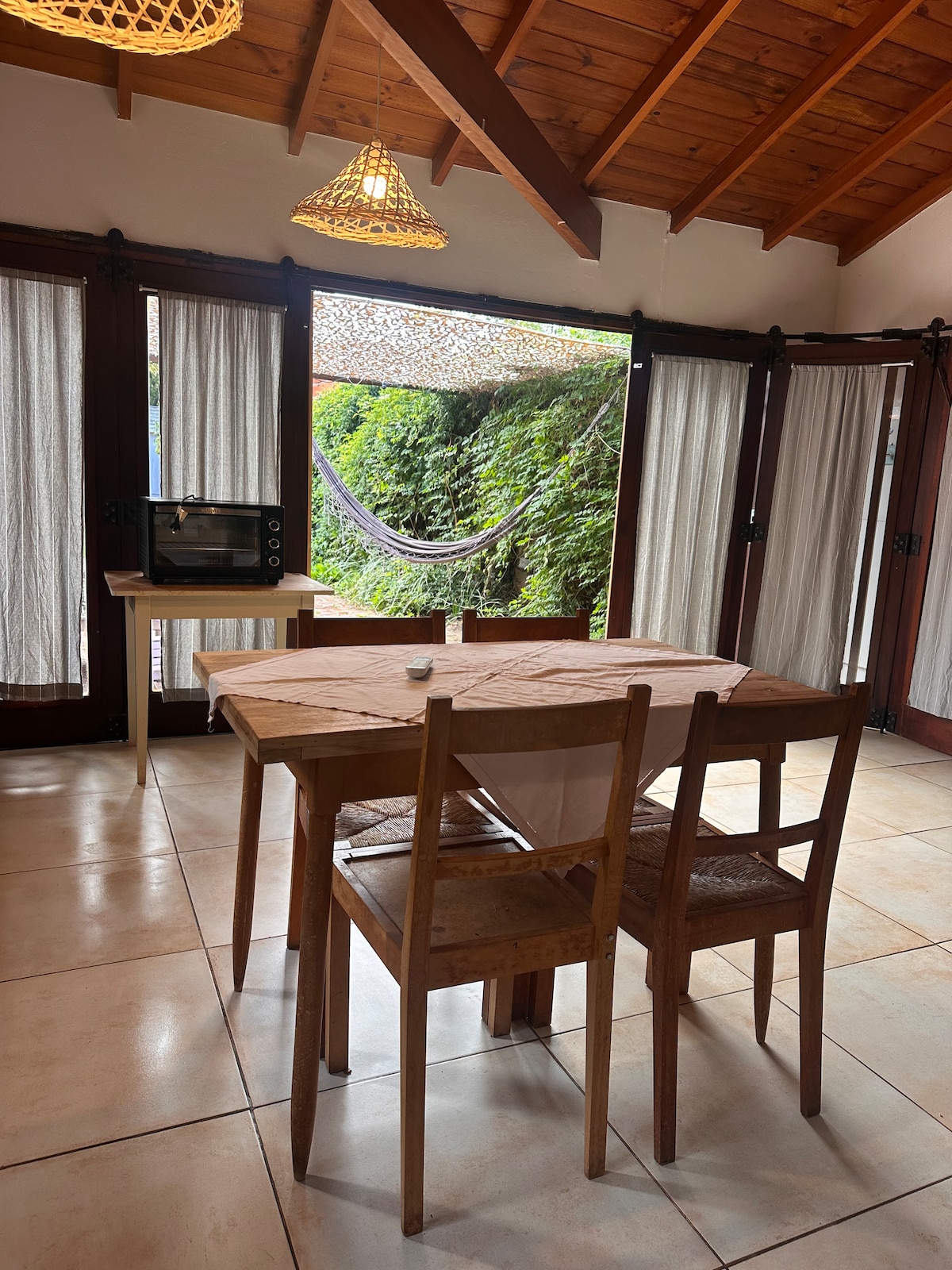 Koselig, gul hytte i landlig stil, beliggende i det rolige Copacabana-nabolaget Miramar. Bare noen kvartaler fra havet, omgitt av trær og natur. Blokker fra fossen, naturreservatet. Ideelt for dem som ønsker seg hvile, stillhet og kontakt med naturen. ✔️ Boblebad på badet Tredekk ✔️ ✔️ Klimaanlegg ✔️ Et utstyrt kjøkken ✔️ Romslig grøntområde og skog. Perfekt for par, familier eller venner. Vi ser frem til ankomsten din for å nyte et avslappende opphold