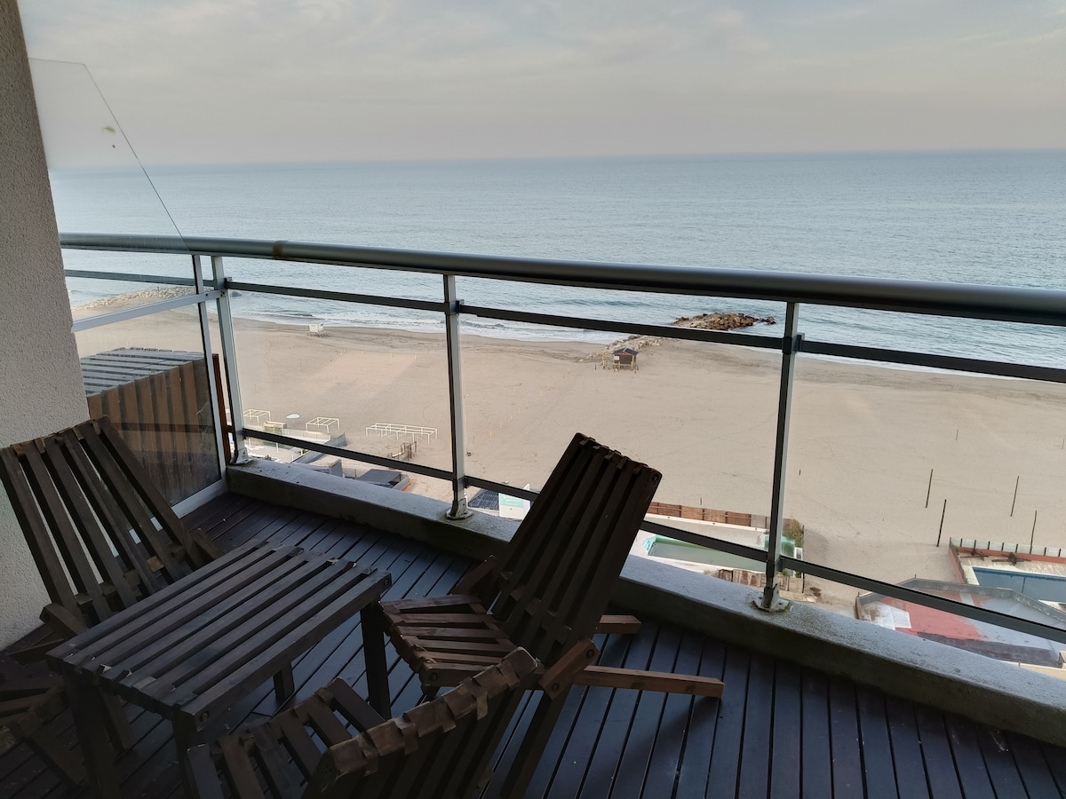 Denne leiligheten ble designet for å hvile med utsikt over havet. Lys, enkel og funksjonell, med en åpen utsikt som kan nytes fra hvert hjørne. Den ligger høyt oppe, vendt mot Miramar-kysten, og tilbyr en rolig og komfortabel atmosfære. Stedet har et utstyrt integrert kjøkken, vaskemaskin, spisestue, dobbelt soverom og enkeltsenger, komplett bad og store vinduer som fyller leiligheten med naturlig lys hele dagen.