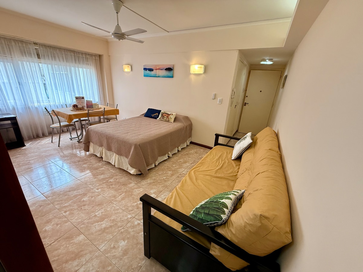 Edificio familiar y tranquilo. 2 ambientes, ideal 4 personas Baño con muy buena corriente de agua para hermosas duchas calientes. Excelente ubicación a 3 cuadras de la playa 100% Bristol Hay otro bañito de servicio. Cocina a gas con heladera, pava eléctrica, minipimer y mucha vajilla. Living con mesa, 4 sillas, mesa ratona, banquetas, sillón-cama WIFI TV 50” en habitación TV 32” living Más cómodo imposible!