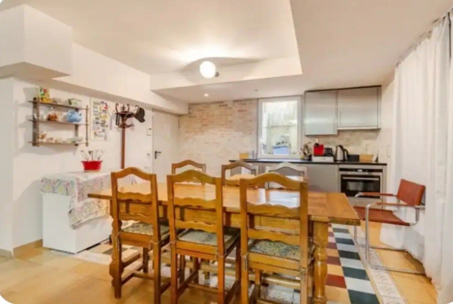 Det er et loft, i nedre etasje (tilgjengelig med heis), det store rommet inkluderer et biljardbord, et kjøkken, en sovesofa for 2 personer (kan lukkes av tykke antistøygardiner). To til tre enkeltsenger kan legges til. I det tilstøtende rommet med en dobbeltseng (160), kan en til to enkeltsenger legges til, i tillegg til en paraplybarneseng. Alt dette er betjent av et dusjrom med dobbel vask og toalett. Det er ikke et hotell.
