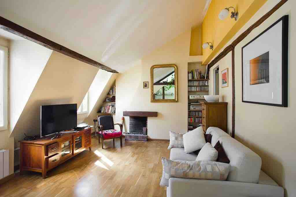 Ja, dette er nøyaktig utsikten fra vinduet ditt. For bryllupsreisen din eller bare for en frokost med utsikt over Notre Dame på din egen balkong, i ditt parisiske hjem, Severine. Se over Seinen og hustakene, solen går ned bak Notre Dame og himmelen får 50 nyanser av rødt. For å komme til to-roms toppleiligheten din i 3. etasje med klimaanlegg, må du gå opp tre etasjer i den historiske 400 år gamle bygningen vår i hjertet av byen, men det romantiske stedet er verdt det, spør gjestene våre …