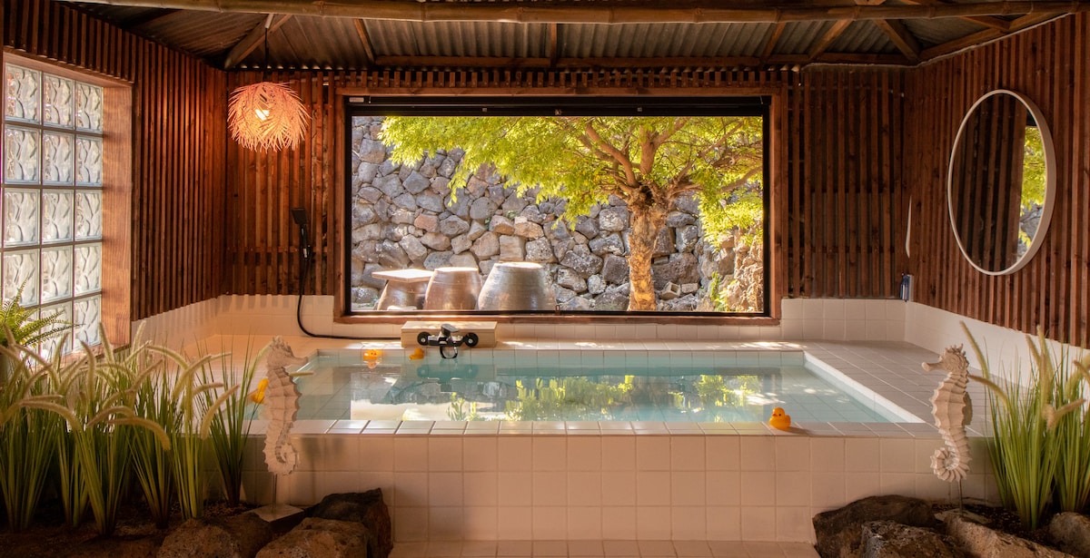 제주감성숙소/10월할인이벤트/미온수실내수영장/공항인접/제주애월돌담숙소/풀옵션