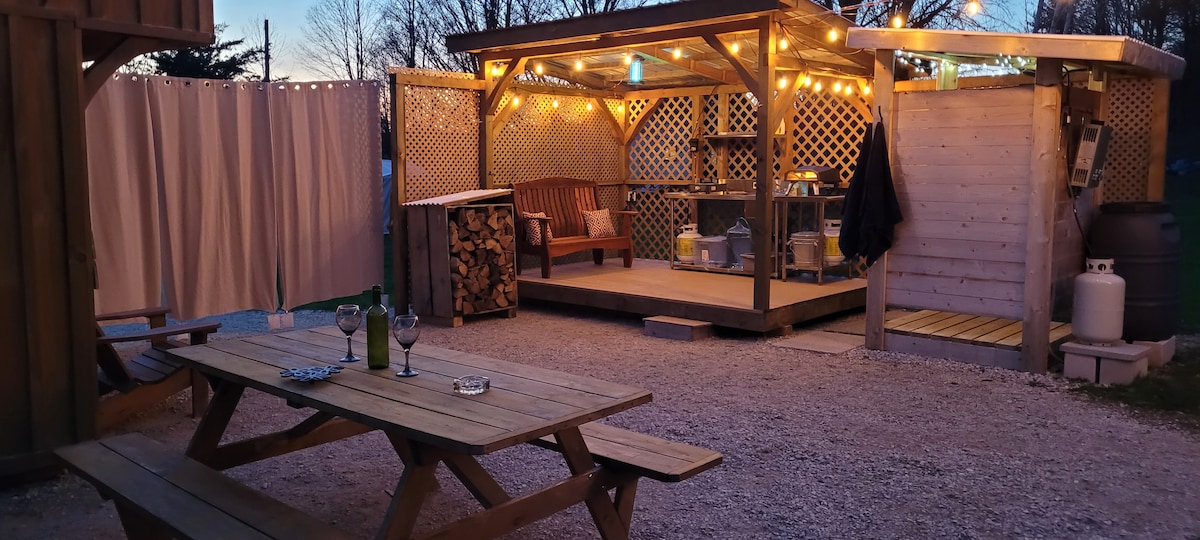 Simple, rustic stay for quiet, low-impact guests. This is not a hotel—we offer a premium off-grid setup with a bunkie, outhouse, outdoor kitchen and outdoor shower. The sleeping loft is small and accessed by a steep ladder. Insects, wildlife, and temperature changes are all part of the environment. If you’re comfortable with a no-frills, back-to-basics camping experience, this can be a great fit.