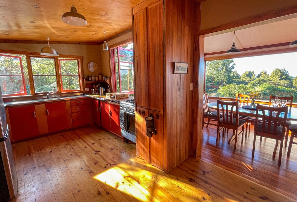 Slapp av og slapp av i fullstendig privatliv med fantastisk utsikt. Peel Forest Scenic Park er en vakker beskyttet regnskog. "Utsikten" ligger høyt oppe i tretoppene. Omgitt av skog og fugleliv, turer til fosser, gamle trær og fjell på dørtrinnet ditt. Avsidesliggende, varme, rene og komfortable gjester beskriver det som "en drøm". Flott for par, familier og store grupper. 5 minutter til Green Man Cafe & Bar. Prisen inkluderer luksuriøst sengetøy, toalettartikler, frokostblanding, te og kaffe, utgangsrengjøring. Gratis trådløst nettverk og parkering.