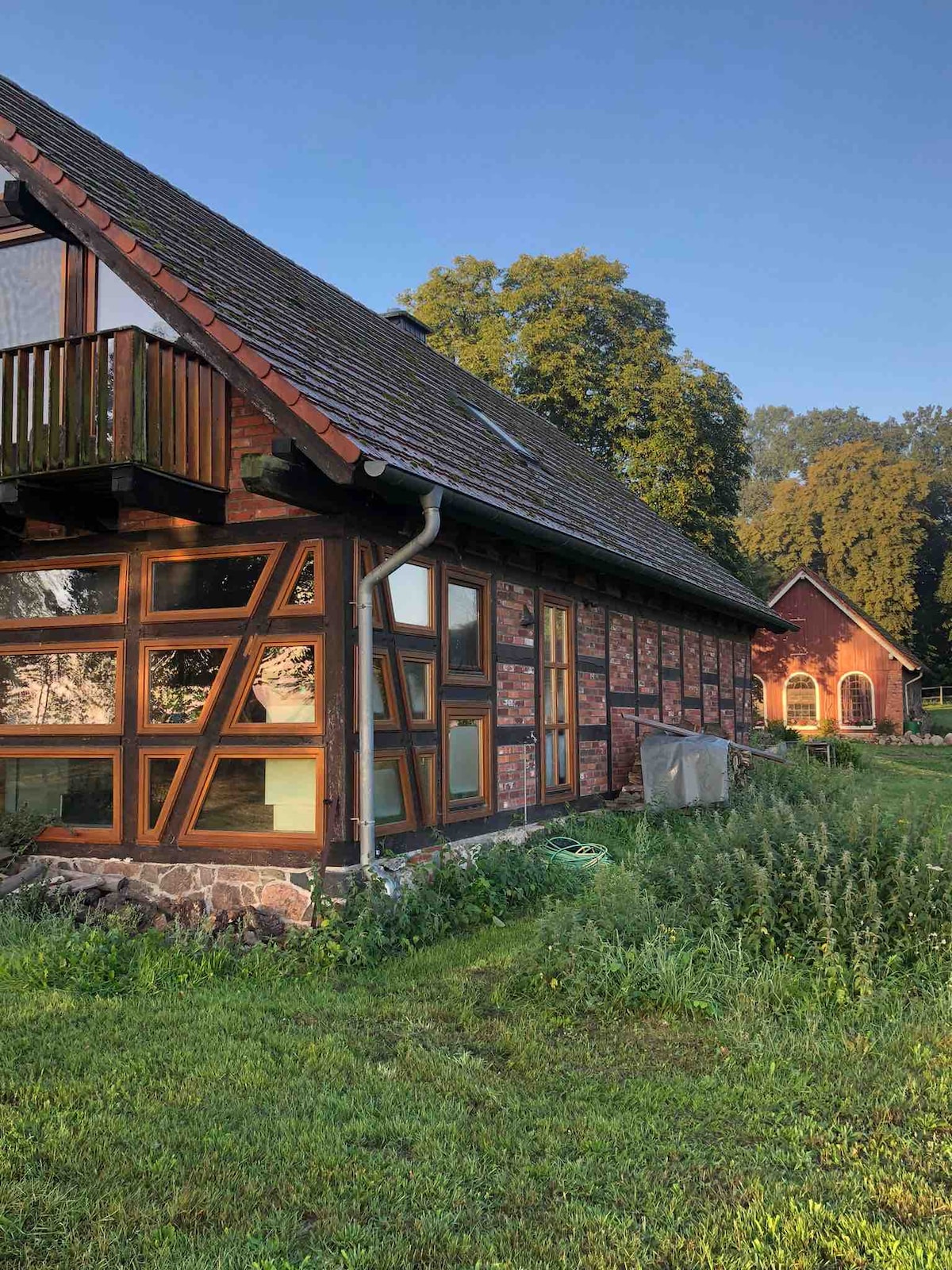 Midt i det rolige landskapet mellom Lindow og Rheinsberg ligger den fredede tidligere skolebygningen i en liten landsby. Den enkle, men smakfullt ombygde låven er et fint sted å slappe av. Hagen grenser til åkeren bak, om kvelden kan du nyte solnedgangen med et glass vin. I området kan du utforske interessante steder, det er badevann og fredelige steder i naturen, tranene flyr over taket om høst.