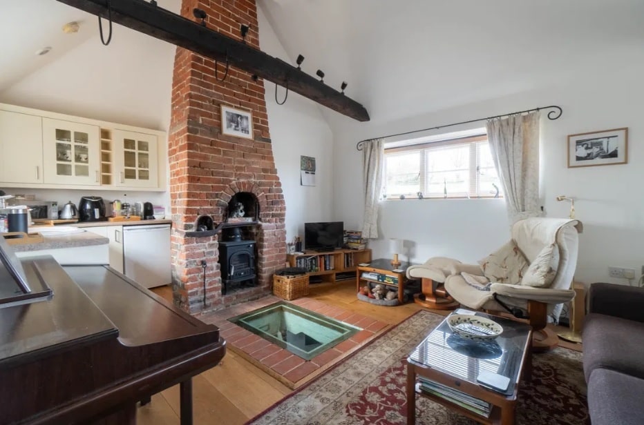 Låven ligger i utkanten av den vakre middelalderbyen Long Melford, og kombinerer moderne komfort med en imponerende historisk stamtavle. Den ligger ved siden av The Old Cottage, et sjarmerende skjevt Tudor-hus, som går tilbake til 1430-årene, og som er bebodd av vertene Janine og Richard. Det er mange vakre spaserturer og fascinerende steder å besøke i nærheten, inkludert middelalderens Lavenham, den gamle markedsbyen Sudbury med det fantastiske Gainsborough-museet, og Bury St Edmunds og det fine abbediet.