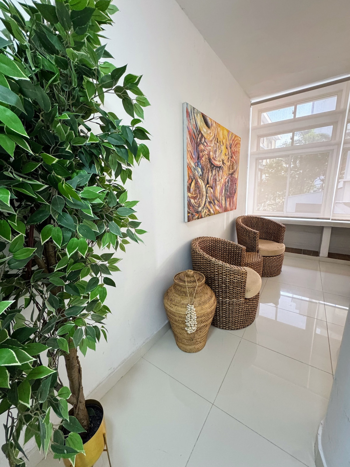 Cartagena er et magisk sted, fullt av steder å oppdage, og denne leiligheten er en av dem. Den skiller seg ut ved å være moderne, i en kolonial bygning som dermed bevarer atmosfæren i Cartagena. Det er et sted hvor privatlivet er en prioritet, og gjestenes områder respekteres. De hvite og blå fargene i leilighetens innredning gir en følelse av friskhet, og den store terrassen med vakker utsikt over den inngjerdede byen gir deg mulighet til å være ute.