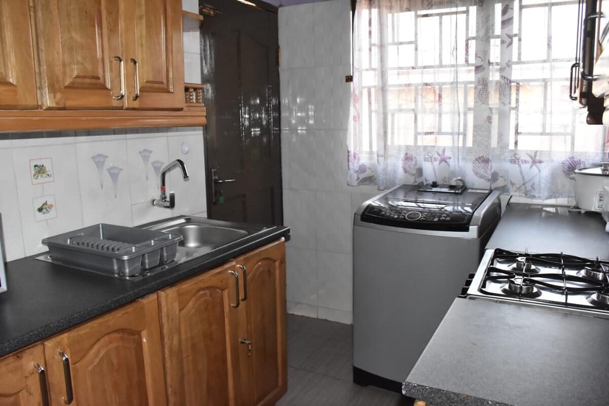 – tre soverom og to bad (ett privat bad på soverommet, ett hovedbad) – stue med 55 tommers smart-TV – fullt utstyrt kjøkken (inkludert vaskemaskin) – varmtvann – spiseplass – privat inngang – grillområde – trådløst nettverk med høy hastighet – gratis parkering (opptil 3–4 biler) – overvåkningskameraer og elektrisk gjerde for din sikkerhet – gratis rengjøringstjeneste når det trengs – innsjekking uten vert med vår døgnåpne vaktmester *GENERATOR TILGJENGELIG FOR STRØMBRUDD. Perfekt for familier, turister og forretningsreisende!