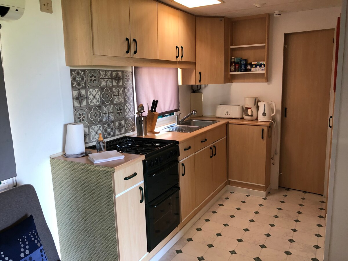 Koselig, fullt utstyrt mobilhome 20 km fra havet, 200 m fra elven.