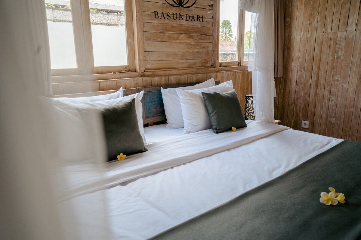 For bryllupsreisende er dette rommet akkurat det du trenger. Hvert rom er vakkert designet med balinesiske elementer som en viktig del av innredningen. Et nydelig maleri på veggen vil være en påminnelse om at du nå er på Bali, og du er på god vei til å finne lykken. Med rommet i første etasje kan du ha direkte tilgang til bassenget. Når solen skinner klart, og det blir for varmt, kan du bare hoppe i bassenget fra ditt eget rom.