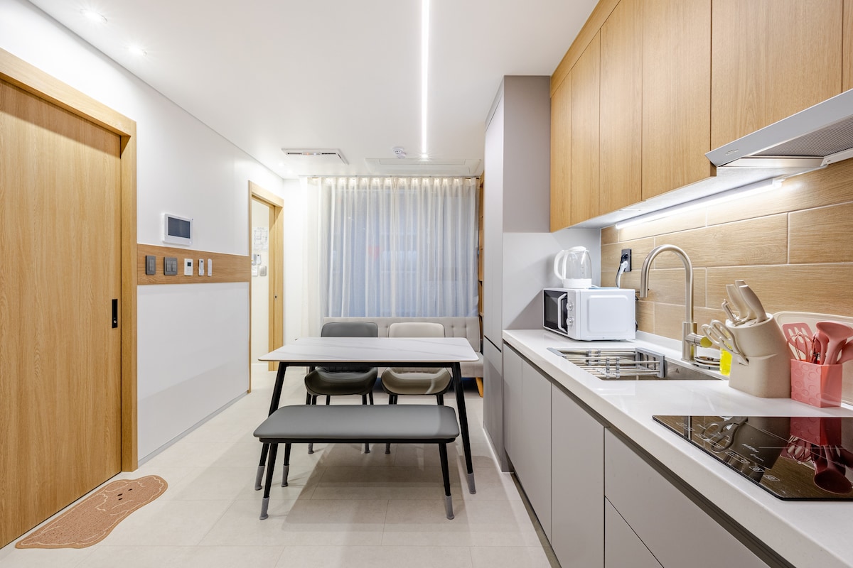 Dette er et rom med både transportmuligheter og en sofistikert og ryddig stil. Det er ikke bare et vakkert sted på bilder, men et sted som er omgjort med tanke på meg, min familie og mine kjære. - Parkering Gratis parkering tilgjengelig i bygningen - Annet 65-tommers 4K-TV [Chromecast, Netflix, Disney Plus, YouTube Premium, Coupang Play] Ultrahurtig internett wifi Vinter ondol kjeler / sommer takmontert klimaanlegg, vifte -Trafikk 5 minutter å gå til Ori Station / 7 minutter å gå til Migeum Station / 10 sekunder å gå til bussholdeplassen 5 minutters gange til flybussholdeplassen, 2-30 minutters intervaller - Nærliggende fasiliteter Bygningens første etasje / kjeller 1. etasje nærbutikk og ulike restauranter, bakeri, kafé, kafé. Homeplus (CGV) 2 minutter å gå, Hanaro Mart 3 minutter å gå Shinsegae Department Store (CGV), E-Mart 15 minutter å gå ***Vennligst sjekk*** Fest X, inviter venner X, røyking X (inkludert elektroniske sigaretter), støy etter 11 om kvelden X