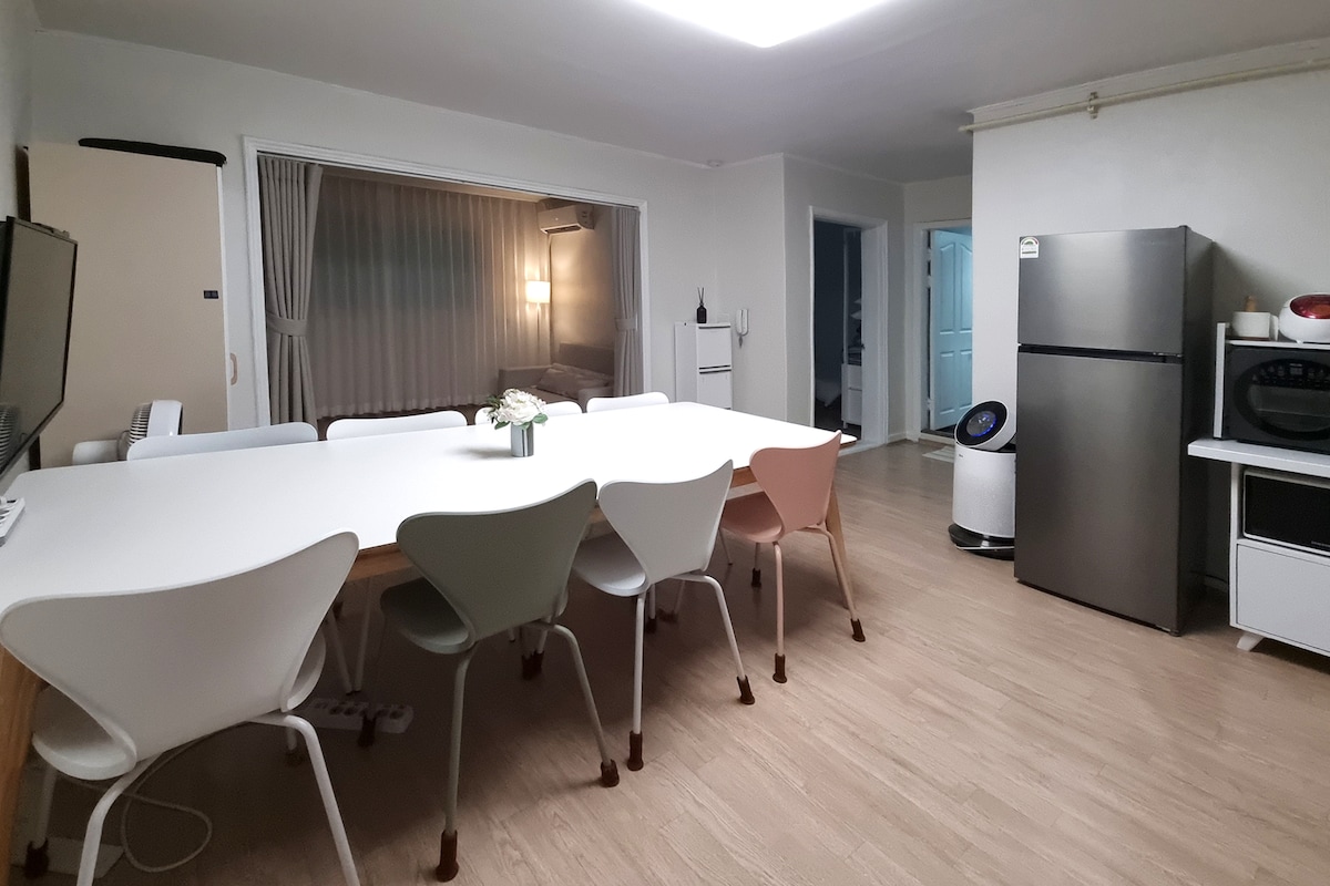 Rosa House | Ditt eget øyeblikk med hvile i hjertet Tilfeldigvis, i disse dager, Har du aldri tenkt: "Jeg vil føle meg komfortabel selv på et sted som ikke er mitt eget"? Om morgenen drikker du kaffe mens du ser på utsikten over byen utenfor vinduet. En ettermiddag med å lytte til favorittmusikken din og sitte i stillhet. Dette stedet er forberedt for en slik dag. 🛋 Fluffy sofa og solfylt vindusbord Helbredende stemning med🌷 søte tilbehør og mye naturlig lys 🚶♀️ Praktisk beliggenhet i sentrum, innsjekking uten vert er tilgjengelig. To minutter til fots fra Pyeongchon stasjon, og to minutter til fots fra e-mart og nærbutikk. * Bruk av madrass i latexskum (Hanssem-madrass: Honey-søvngaranti). * Ekstra gjester vil bli gitt som toppers og sengetøy:) * Denne boligen har plass til opptil fire personer! * Google Chrome Cast er installert.💚 Du kan se OTT-en du vil gjennom speiling. (bakkebasert TV, kabel x) * Innsjekkingstid etter kl. 16.00. * Utsjekkingstid innen kl. 12.00