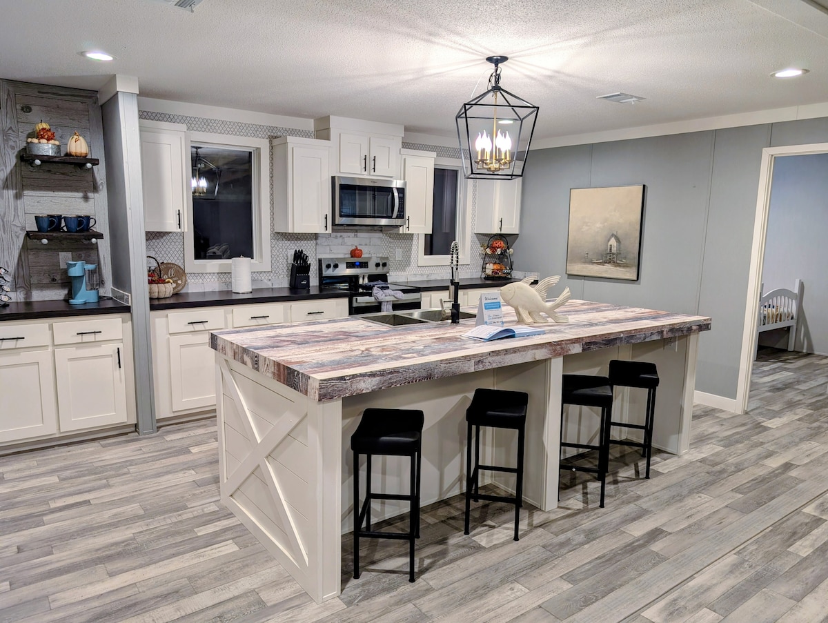 Cranes Landing er et fantastisk hjem ved vannet på en tomt på over en hektar med Suwannee-elven bare noen få skritt unna! Dette er et elegant sted å bo, og det er perfekt for gruppeturer med overnatting for 6 gjester. Huset med to soverom (ett med køyesenger) og ett bad har alle fasilitetene du ønsker deg, samtidig som du føler deg som hjemme. Denne eiendommen ligger også 5–10 minutter unna nærmeste båtrampe med en privat brygge for å holde vannfartøy pluss alle fasilitetene du trenger.